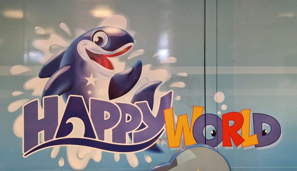 Nu var våra barn lite för gamla för lekhörnan men sådan fanns också. Av respekt mot de familjer och barn som vistades där så ville jag inte fotografera den. Tumlaren Happy är rederiets familjemaskot.
