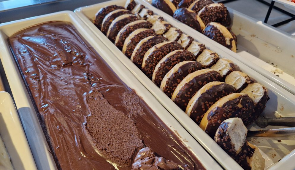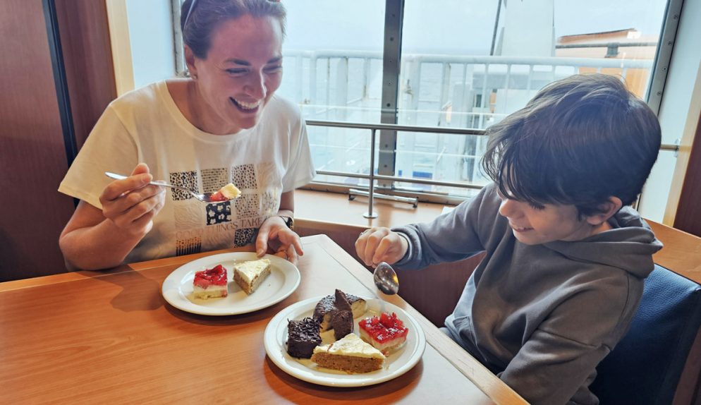 Taste är namnet på Stena Lines bufférestauranger och jag kan meddela att det passar bra; maten är smakrik och väldigt god. För vuxna är priset 315 kronor, barn mellan 4 till 15 år äter för halva priset, och under 4 år är det gratis. Här ingår allt från förrättsutbud och bröd samt ostar, till varma rätter, flera olika desserter samt vin, öl, läsk och kaffe.