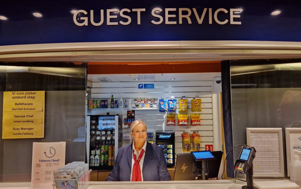 Ingen ombord visste vilka vi var eller att vi var inbjudna vilket är det bästa. Varje interaktion med personal blir autentisk. Det gjorde att jag blev desto gladare äver det vänliga bemötandet i guest service (info). Jag hade ärende dit ett par gånger och fick samma vänliga bemötande varje gång. Jag passade även på att lyssna lite på hur mannen framför mig blev bemött. Samma där. Vänligt, inlyssnande och förstående. Rätt personal på rätt plats med andra ord!
