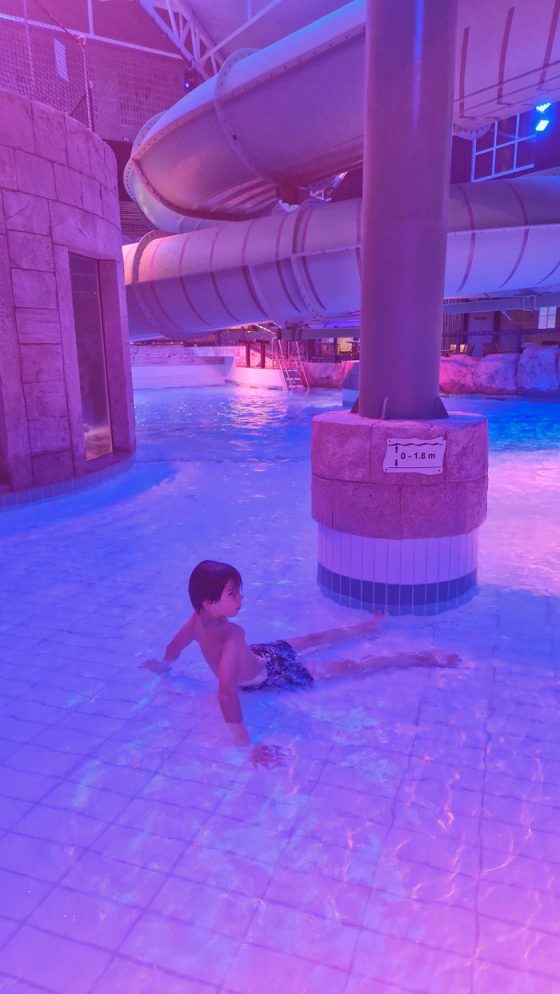 Självklart var det första vi gjorde att kasta oss i badkläder för att upptäcka badet, barnen var exalterade och vi vuxna tyckte det var väldigt skönt med det smidiga att ha allt på hotellet. Det är helt okej att trippa in i hissen i badkläder och handduk (men är du blyg, ta med en badrock) och åka direkt ner till 0:an där du når omklädningsrum, duschar och kommer vidare ut till badavdelningen.