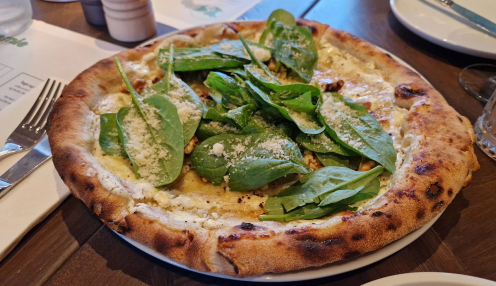 Andra kvällen började vi med att dela en pizza mellan oss, istället för förrätt. Egentligen var det vuxensmaker men jag var så nyfiken och älskar kombon getost, ruccola, honung och valnötter att det bara stod mitt namn skrivet över hela pizzan! Och, den var lika god som jag hade hoppats på.