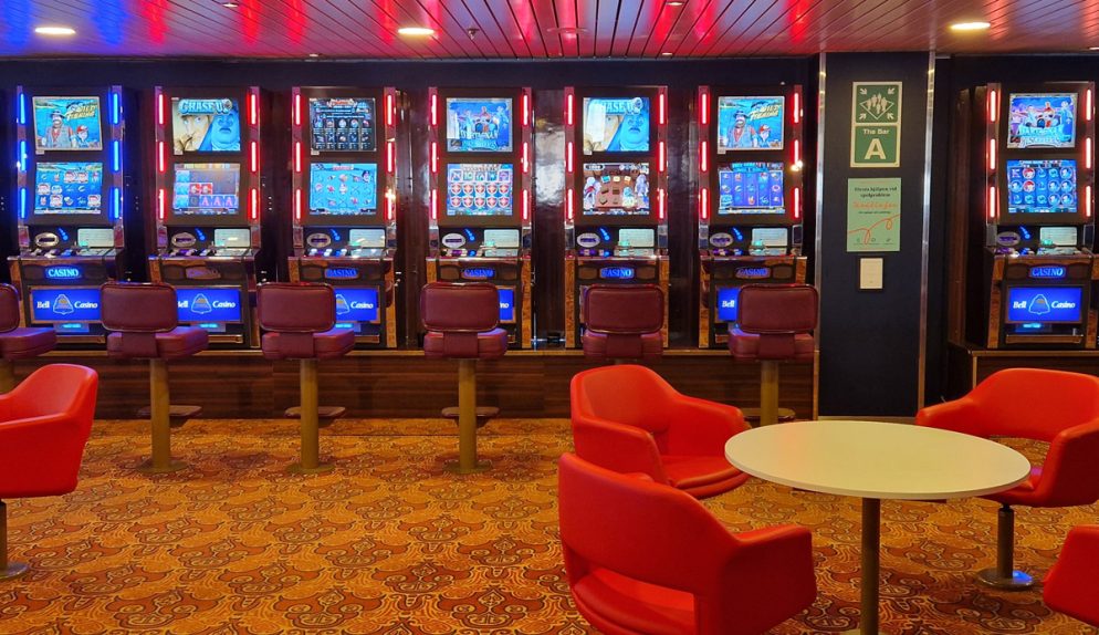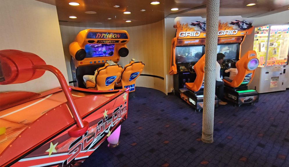 Nyfikna som vi är av oss började vi med att se oss om lite. På däck 7 finns informationsdisken/receptionen, butik, café och bar, några arkadspel och familjelounge, lekhörna, område för husdjur, bagagerum och toaletter.