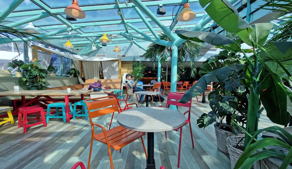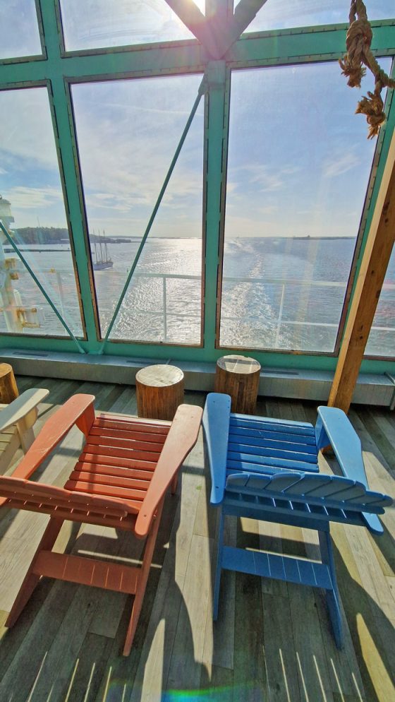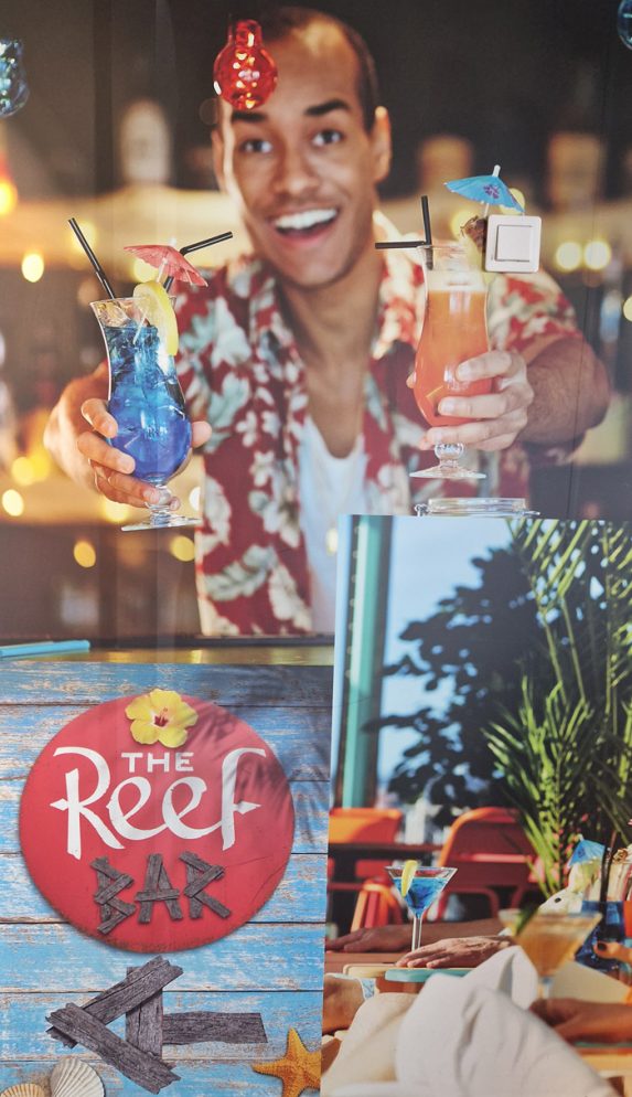 Förutom mat & shopping får ni inte missa The Reef-bar på däck 9. Japp. Quality Hotel The Reef har en “bar-filial” kan man säga ombord med glada färger och tropisk stämning här också. Vi slog oss ner under glastaket, njöt av ljuset, en och annan glass från den intilliggande baren…själv kunde jag självklart inte låta bli att gå ut på däck för att insupa havsluften.