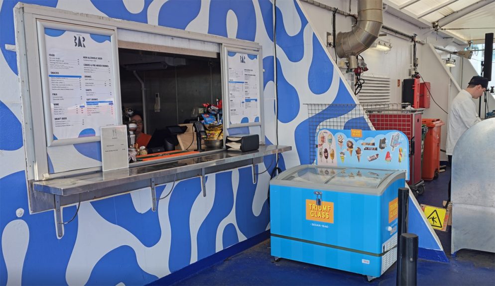 När man blir hungrig finns tack och lov också en bar och restaurang där man kan beställa enkla rätter som burgare, pommes frites med mera vilket vi gjorde. Skönt att slippa lämna badet när alla har som roligast.