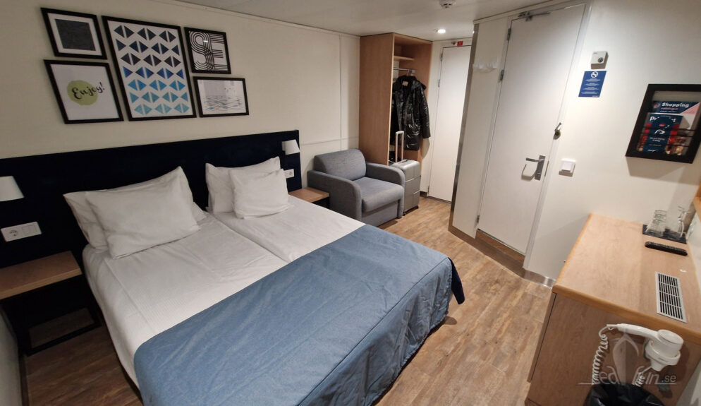 Efter att jag hade checkat in i min hytt, en Deluxe Seaview, gjorde jag något jag inte brukar hinna med: jag kastade mig på dörren och öppnade den när jag hörde ett första utrop. Då fick jag veta att de minsann hade happy hour första timmen. Ha, perfekt!