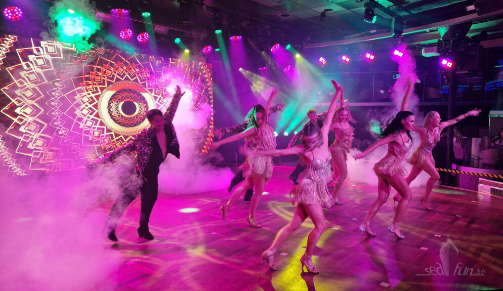 Först ska vi klargöra att det inte finns någon stor julshow på Silja Serenade, utan det som har inslag av jul är Mainstream Girls uppträdande på promenaden. I Starlight visas en dansshow med sång i vissa nummer. Artisterna är inte svenska, de är väldigt proffsiga och duktiga och showen håller hög nivå, meeen…ibland kan jag tycka att det blir lite ”för sexigt”.