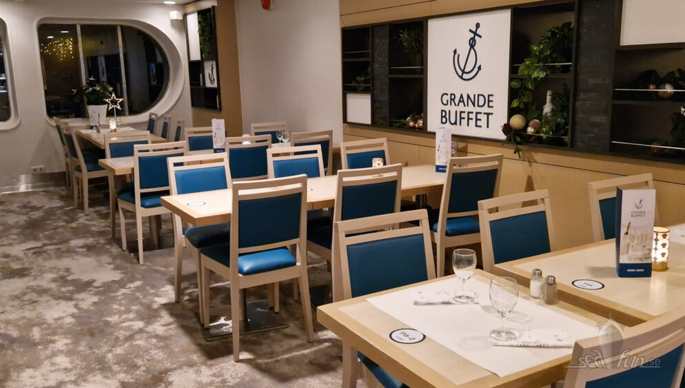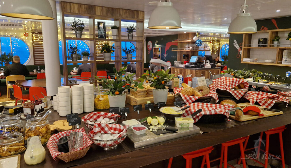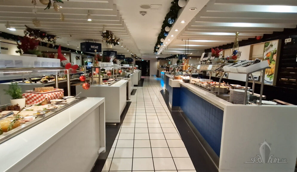 Julbordet på Silja Serenade serveras, som hos de andra rederierna, i deras bufférestaurang. Den må vara praktisk men den är inte jättemysig. Det är lite konstigt för ett däck upp på promenaden är känslan mer flott och kryssningsaktig medan buffén känns mer som på en färja.