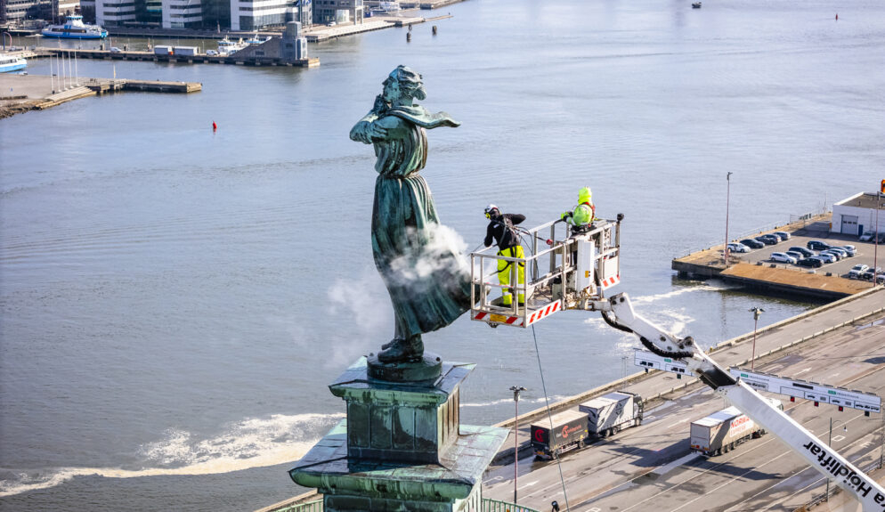 – Insatsen är den första i sitt slag sedan skulpturen restes 1934, säger Håkan Lundell, teknisk förvaltare hos fastighetsägaren Higab.